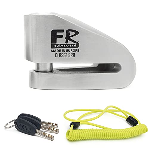 FR Sécurité FR110S Stöldlås Hög säkerhet Moto Godkänd SRA Axel 10mm Lås Skiva Stål Skydd Lås Säkerhet Motorcykel Scooter Cykel, Kabel Påminnelse