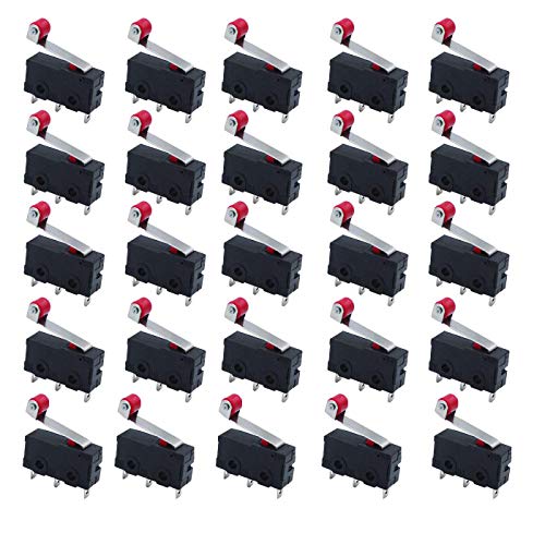 HUAYAO 25 stycken mikroomkopplare ändbrytare med tillfällig scooter spak arm SPDT 1NO 1NC AC 250 V 5A snap åtgärd gångjärn mini rulle spak lever arm växelbrytare