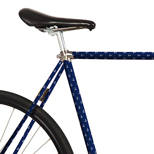 MOOXIBIKE ankare blå mini cykelfolie med mönster för racercykel, MTB, trekkingcykel, Fixie, Hollandrad, Citybike, Scooter, Rollator för ca 13 cm ramomkrets