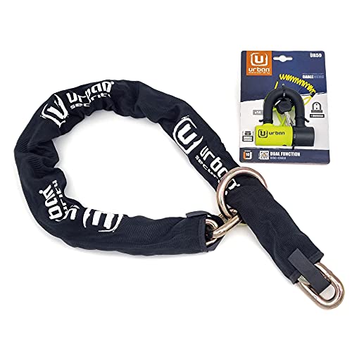 URBAN UR59K120L Anti-Stöld Motorcykel Kedja Hög Säkerhet Stål Special Härdad 13,5 mm Solid Mini U Hänglås 14mm, För Motorcykel Scooter och elektrisk cykel, 120 cm, Svart/Gul