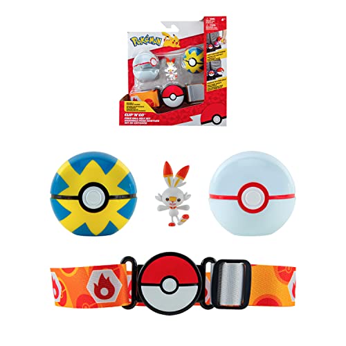 Pokémon Bandai Clip 'N' Go bälte - 1 bälte, 1 snabbboll, 1 första boll och 1 figur 5 cm flambino (Scorbunny) - tillbehör för att klä ut sig som tränare JW2716