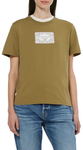 Scotch & Soda dam-t-shirt, bröstkonst, vanlig t-shirt, Tvättad militär, XL