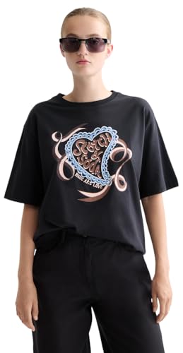 Scotch & Soda dam-t-shirt, bröstkonst, vanlig t-shirt, Mjuk is, XS