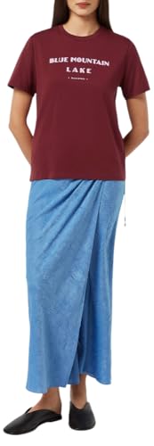 Scotch & Soda dam-t-shirt, bröstkonst, vanlig t-shirt, Bordeaux, L