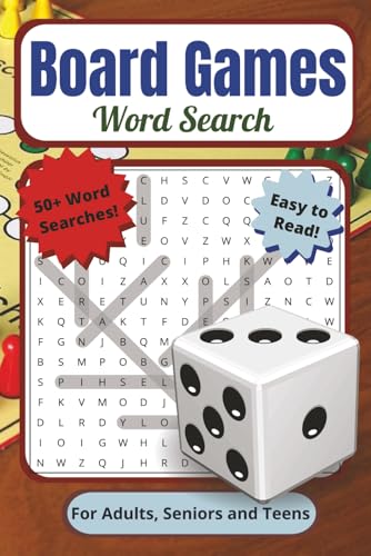 Board Games Word Search Puzzle Book: For Adults, Seniors, and Teens| Easy to Read, 50+ Board Game Themed Word Searches With Monopoly, Scrabble, Clue, ... for Vacations, Holidays and Quiet Moments