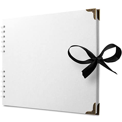 Bstorify Fyrkantiga klippbok fotoalbum 50 sidor (28 x 22 cm) vitt tjockt papper, inbunden, metallhörn, bandstängning – perfekt för dina scrapbooking-album, konst- och hantverksprojekt (vit, 28 x 22