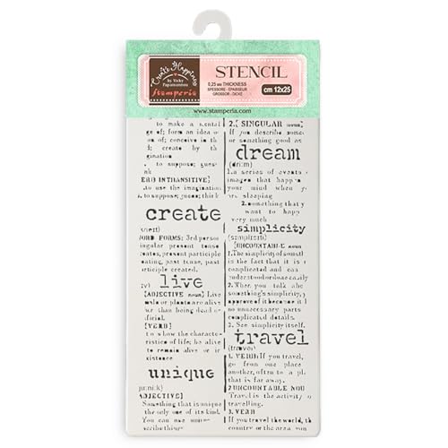 Stamperia – tjocka stencils för scrapbooking, album, korttillverkning, bullet journalling och more, dictionary, flexibelt material, lätt att rengöra, perfekt för hobbyer, hantverk och gåvor (hemlig