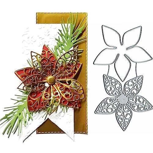 2 st ihåliga blommor metall stansning, jul spets blomma blad skärning schabloner för gör-det-själv inbjudan kort scrapbooking album dekorativ prägling papper form korttillverkning