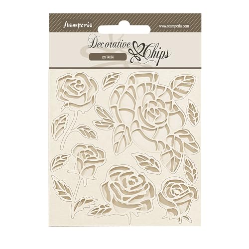 Stamperia – dekorativa chips för scrapbooking, album, korttillverkning, bullet journalling och more, rosor, laserskurna kortbordsformar, lätta att limma med, perfekt för hobbyer, hantverk och gåvor