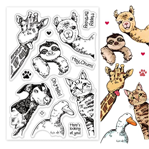 INFUNLY Djur genomskinliga stämplar för korttillverkning genomskinliga silikonstämplar giraff anka gummistämplar tätning för gör-det-själv scrapbooking dekoration album hantverk