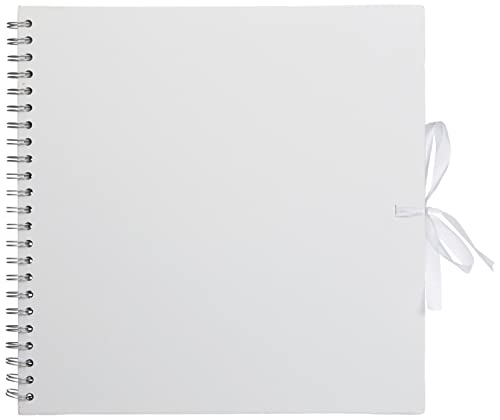 Bstorify Fyrkantig klippbok, fotoalbum, 80 sidor, vitt tjockt papper, hårt omslag, metallhörn, bandstängning, perfekt för din scrapbooking, album, konst- och hantverksprojekt (vit, 28 x 28 cm)