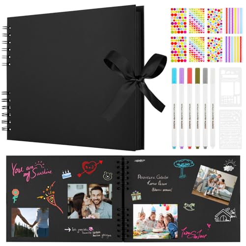 YILEEY fotoalbum svarta sidor scrapbooking papper 26 x 17,5 cm, svarta refillsidor för scrapbooking album 28 x 21 cm, förpackning med 20