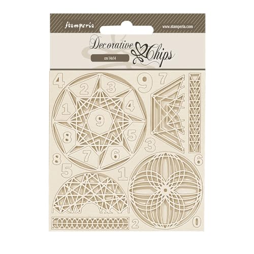 Stamperia – dekorativa chips för scrapbooking, album, korttillverkning, bullet journalling och more, verktyg, laserskuren kortbordsformar, lätta att limma med, perfekt för hobbyer, hantverk och gåvor