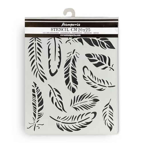 Stamperia – tjocka stencils för scrapbooking, album, korttillverkning, bullet journalling och more, feathers, flexibelt material, lätt att rengöra, perfekt för hobbyer, hantverk och gåvor (lavender)