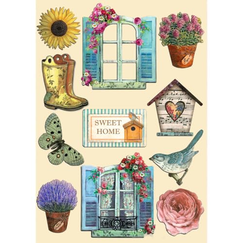 Stamperia – Färgade träformer för scrapbooking, album, korttillverkning, bullet journalling och more, laserskärning, tryckt för förbättrad detalj, perfekt för hantverk och gåvor (trädgård) (A5)