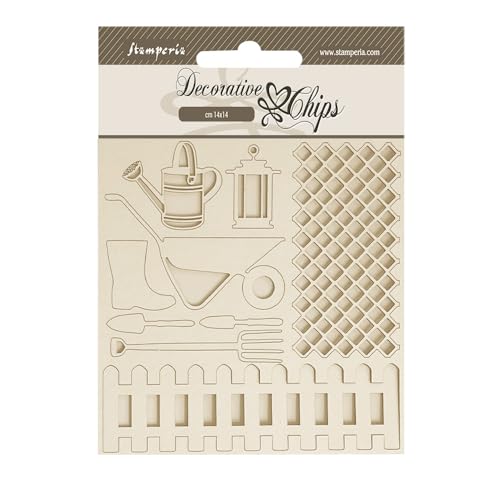 Stamperia – dekorativa chips för scrapbooking, album, korttillverkning, bullet journalling och more, bo, laserskurna kortformar, lätta att limma med, perfekt för hobbyer, hantverk och gåvor (trädgård)