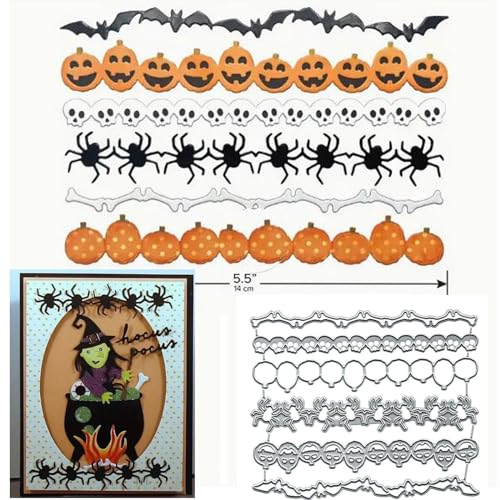 Halloween gränser pumpa spindel fladdermus metall stansning, halloween skalle spindel skärning schabloner för gör-det-själv scrapbooking album dekorativ prägling papper form korttillverkning