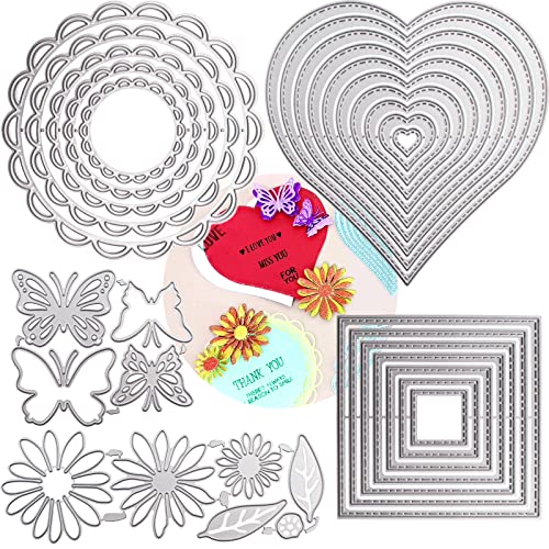 DailyTreasures 5 set stansformar stencil, 32 st metallmallformar flera former gör-det-själv hantverk präglingsverktyg för album scrapbooking konstdekor och korttillverkning (hjärta/fyrkantig/rund