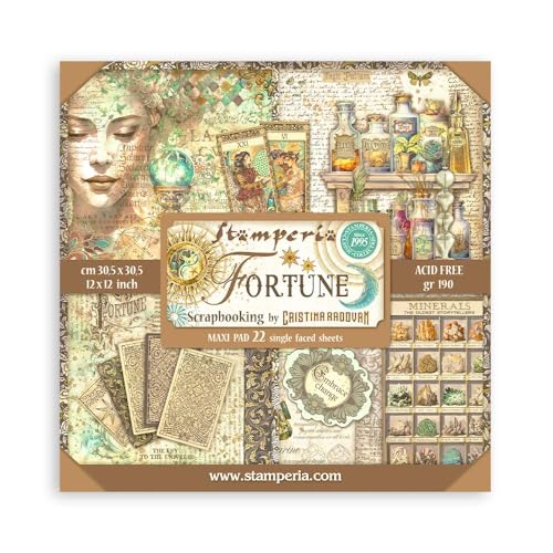 Stamperia – Klippbokspapper för scrapbooking, album, korttillverkning, bullet journalling och more, acidfri, enkel face, perfekt för hobbyer, hantverk och gåva (fortune) (30,5 x 30,5 cm)