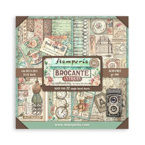 Stamperia – Klippbokspapper för scrapbooking, album, korttillverkning, bullet journalling och more, acidfri, enkel face, perfekt för hobbyer, hantverk och gåva (brocante antiques) (20,3 x 20,3 cm)
