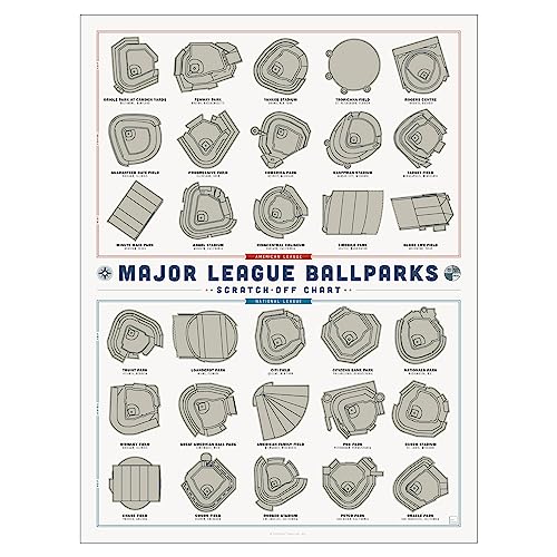 Pop-tabell, Stora League Ballparks Scratch-Off affisch, 30 x 40 cm (12 tum x 16 tum) hink lista tryck, spåra dina besök på alla 30 Pro basebollarenor, sportväggdekor för vardagsrum eller sovsal, 100%