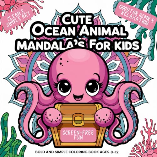 Cute Ocean Animal Mandala's for Kids: Bold and Simple Coloring Book Ages 8-12, Clean & Simple Art, Good for ASMR & Relaxation, Screen-Free Fun