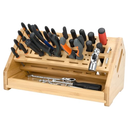 Verktygsarrangör skruvmejsel och tånghållare, rost- och korrosionsbeständigt förvaringsställ i bambu, arbetsbänksförvaring för garage, verkstad, arbetsstation, hem