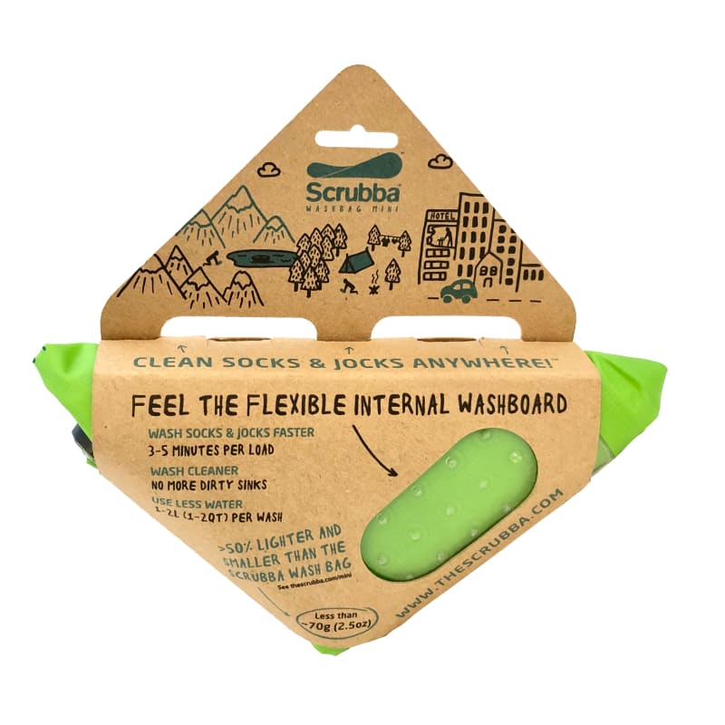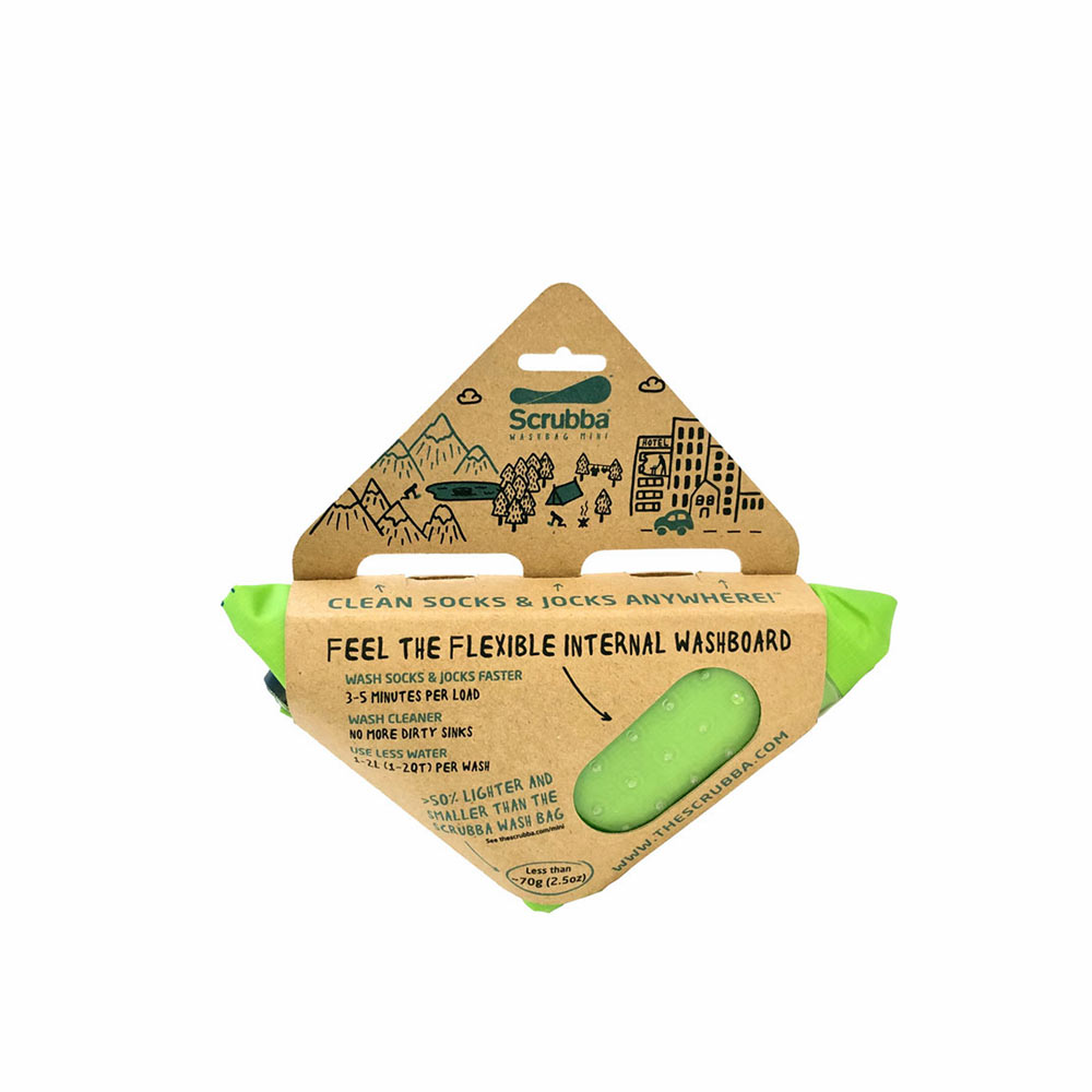 Scrubba Mini tvättväska ultrakompakt tvättväska idealisk för resor, camping och vandring | bärbar tvätt- och torrväska, måste-ha rese väsentligheter grön liten