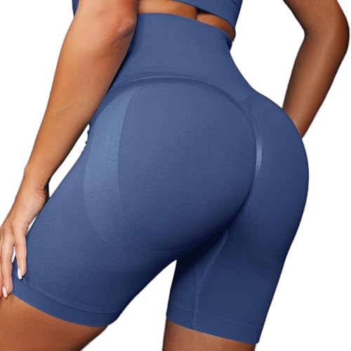 JTSONN Sportshorts dam scrunch butt lyft gym korta magsportbyxor sömlösa cyklist löparshorts booty korta leggings för löpning fitness yoga träning, Mörkblå, M