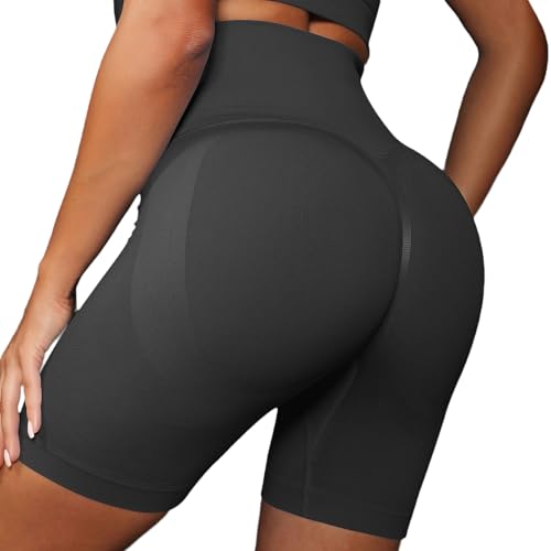 JTSONN Sportshorts dam scrunch butt lyft gym korta magsportbyxor sömlösa cyklist löparshorts booty korta leggings för löpning fitness yoga träning, svart, L
