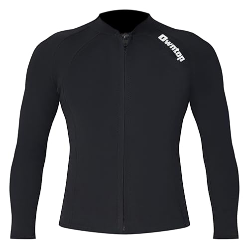 Owntop Våtdräktsjacka för Män - 2mm Neopren Wetsuit Tops Långärmad Fram Dragkedja för Scuba Dykning Surfing Snorkling Simning, Män Svart 3XL