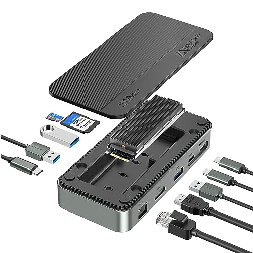 USB-C-hub med M.2-NVMe SSD-hölje, 10-i-1 USB-C-dockningsstation, multiport-adapterdongel med 10 Gbit/s USB 3.2-A/C, 4K@60Hz HDMI, 100 W PD, SD/TF, Gigabit Ethernet, M.2 NVMe/SATA SSD-läsare