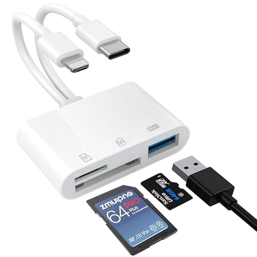 Oliveria SD-kortläsare för iPhone, Lightning till SD-kortläsare, kameraadapter till iPhone, SD till iPhone-adapter, 3-i-1 SD-läsare för iPhone, Micro SD-kortläsare för iPhone 16, 15, 14, iPad, MacBook