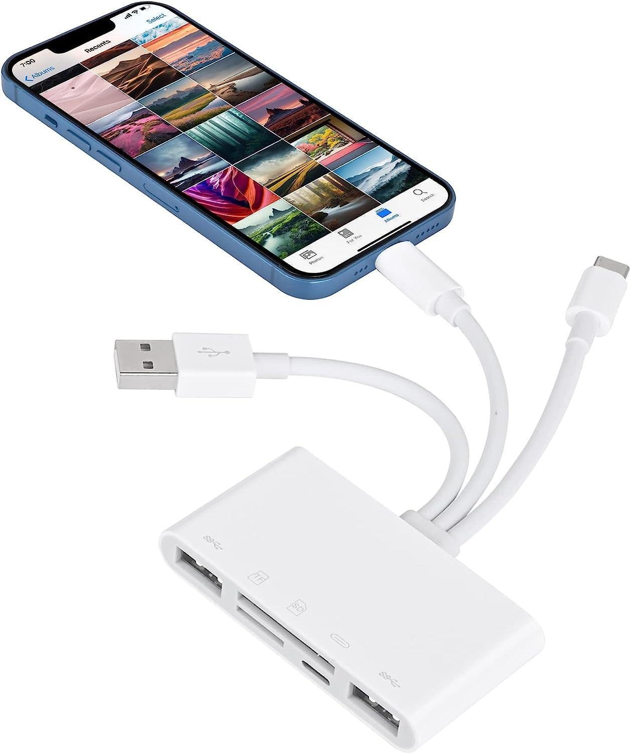 [Apple MFi Certified] SD-kortläsare för iPhone iPad, USB C Lightning SD-kortadapter med SD/TF/USB OTG/Slot-laddning, externa minneskortläsare för iPhone16 15/Mac/Android/kamera