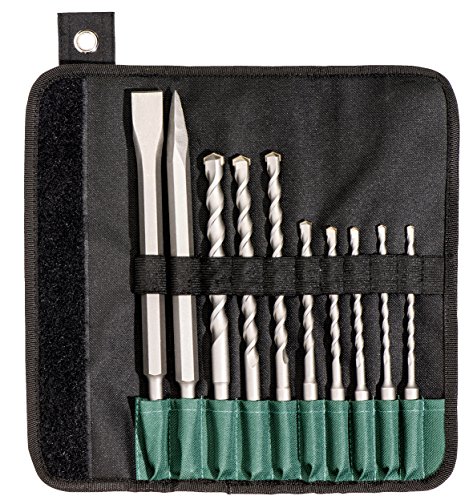 Original Einhell 12 delar SDS-plus borrmejselset (tillbehör till borrhammare, inkl. 10 x stenborr, 1 x platt mejsel, 1 x spetjärn, i ett praktiskt fodral)