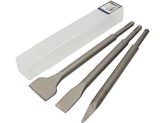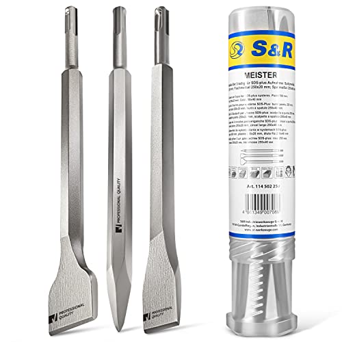 S&R Mejselset SDS-plus 3-delar, mångsidigt användbara, mycket lång livslängd; Plattmejsel, Spade-mejsel, Spetsmejsel.