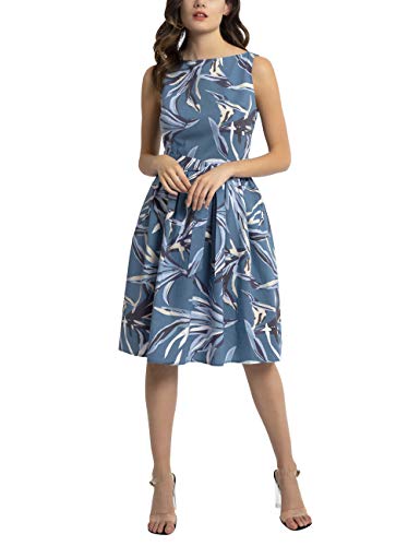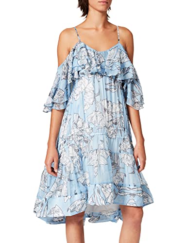 APART Fashion Klänning med tryck för kvinnor, Denim blå och grädde, 42 SE