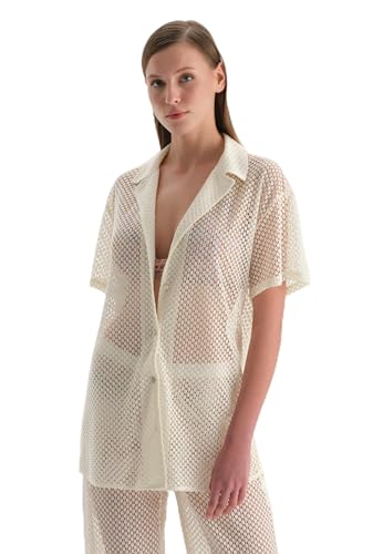 Dagi Ecru High Fashion Stickad långärmad skjorta krage skjorta, ecru, 44, ecru, 44 SE