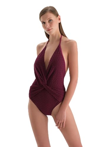 Dagi Bordeaux fashion stickad non-trådad halsringning baddräkt avtagbar stoppning avtagbar rem baddräkt bordeaux, 38, Bordeaux, 38 SE