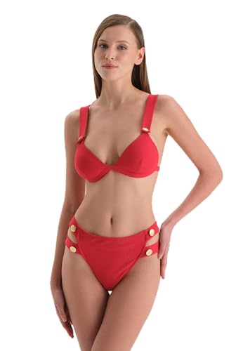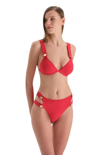 Dagi Red Fashion Stickad icke-trådad triangel liten avtagbar stoppning fast rem triangel topp, röd, 42, röd, 42 SE