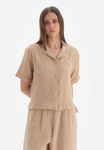 Dagi Beige Fashion Stickad kortärmad skjorta krage skjorta, beige, 40, Beige, 40 SE