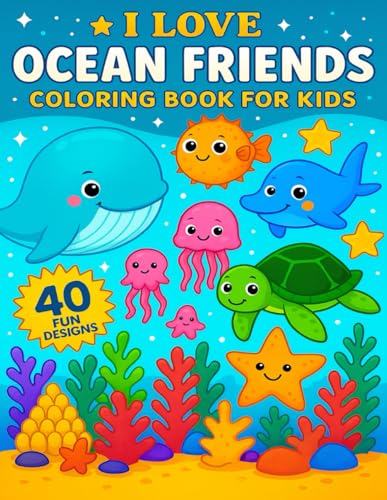 I LOVE OCEAN FRIENDS: Coloring Book for Kids: 40 Fun Designs of Cute Sea Animals for Toddlers and Kids Ages 3–6