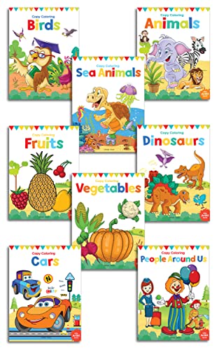 Little Artist Copy Colouring Books: Pack of 8 Books (Birds, Sea Animals, Fruits, Vegetables, Dinosaurs, Cars and People Around Us)
