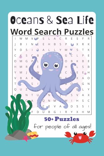 Oceans & Sea Life Word Search Puzzles: Word Searches with Easy to Read Print about Oceans and Sea Life, 50+ Puzzles for people of all ages, Ocean and ... 6x9 inches, gifts for holidays or free times