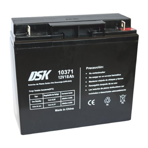 DSK 10371-12V and 18Ah Sealed AGM High Discharge Lead Battery Ideal Battery for UPS-UPS, Security and Communication Systems, Emergency Lights, Black