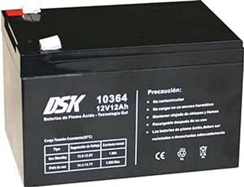 DSK 10364-12V 12Ah Sealed AGM Gel Technology Lead Battery. Ideal for any electric mobility device. Supports longer cycles of use. If it breaks, the gel does not spill.