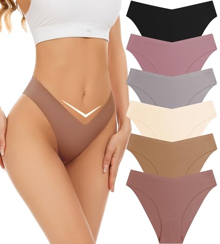 Riozz Seamless Bikini Cheeky Panties for Women Soft V-Cut No Show Hipster Breathable Stretch Invisibles Panties 6 Pack S-XL