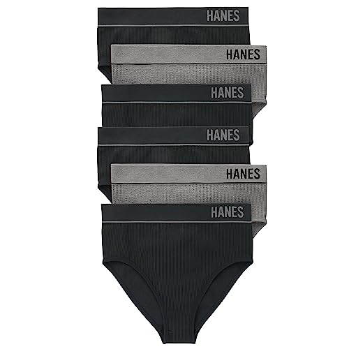 Hanes Women's Originals Hi-Leg Underwear, Seamless Rib Bikini, Assorted Colors, 6-Pack, 4 Black/2 Heritage Grey Marle, X Small