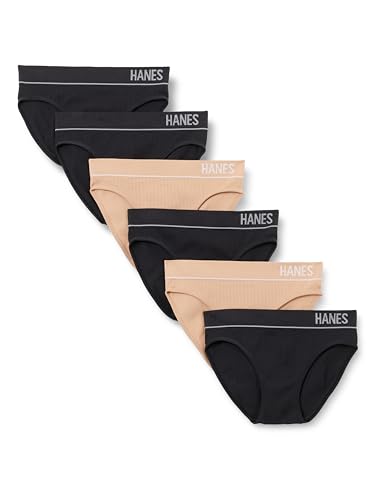 Hanes Women's Originals Seamless Stretch Rib Bikini Panties Pack, Assorted Colors, 6-Pack, 4 Black/2 Deep Glow