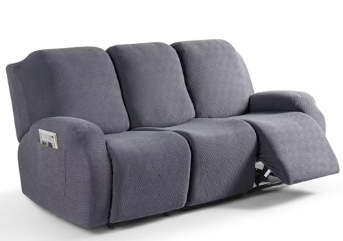 Stretch Recliner Soffskydd 4-delad 1-sits Jacquard Recliner Stol Slipcovers med fickor Soffskydd Recliner Lazy Boy Möbelskydd för vardagsrum,Drakgrå (Color : #7, Size : 3 Seat)